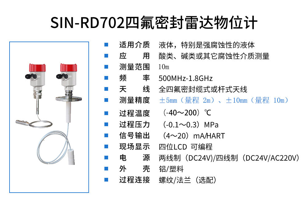 聯測_SIN-RD702四氟密封雷達液位計_適用于強腐蝕性的液體_